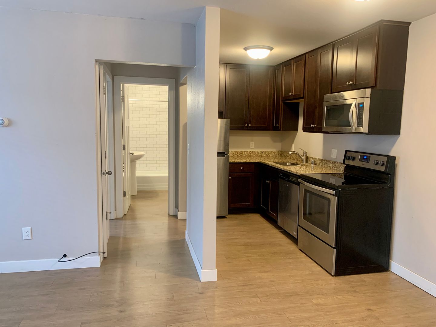 This beautifully updated 1-bedroom is part of a 48-unit apartment building. Unit offers a modern design with granite counter-tops, stainless steel appliances, luxury plank flooring, and updated bathrooms with brushed nickel fixtures and subway tile.